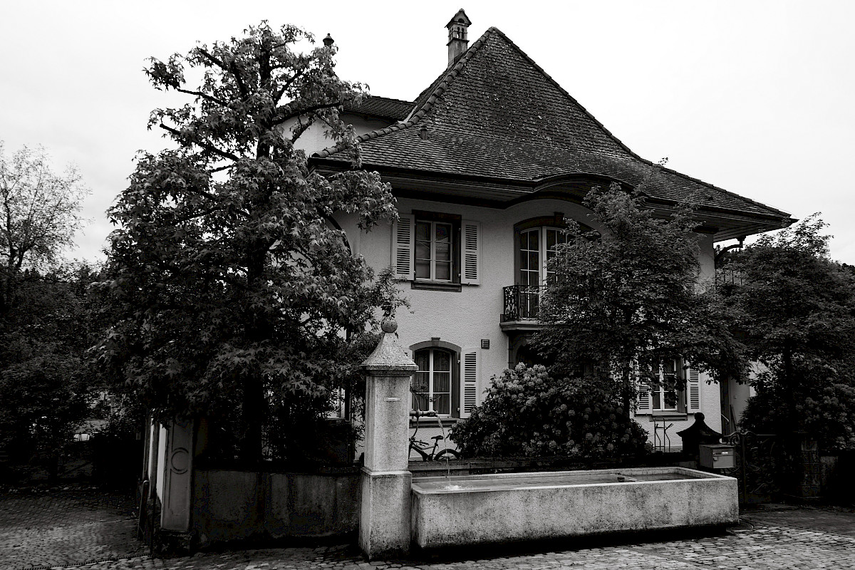 Villenartiger Putzbau unter geknicktem Vollwalmdach. Phantasievolle Details und bemerkenswerte schmiedeiserne Gitter im Bereich des Eingangs und an der südostseitigen halbrund vorspringenden Veranda. Nordostseitig halb in den Baukörper integrierter Treppenturm mit Polygonalhelm und Dachvase.