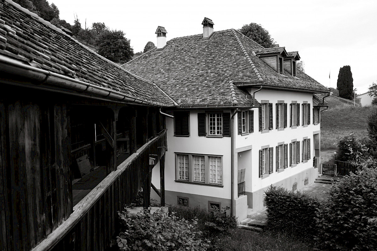 Umgebaut in den Jahren 1790 und 1867. Vorzüglicher Putzbau unter schwach geneigtem Walmdach mit kurzem First. An der Nordost, bzw. SüdwestFassade je ein jüngerer Anbau mit Rieg. Schöne Biedermeiertür. An die Südwestseite dockt in stumpfem Winkel eine gedeckte und westseitig verschalte, ostseitig mit Bogenöffnungen versehene Holzbrücke an, die das Pfarrhaus mit dem höher gelegenen Kirchhof direkt verbindet. Vegetationsreiche Umgebung, südostseitige Gartenanlage mit Pavillon unter geschweiftem Schindeldach.